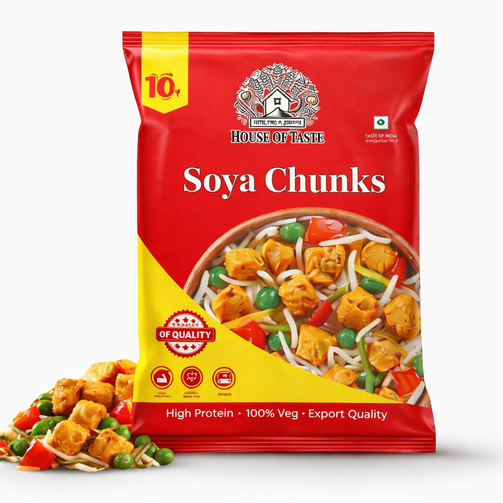 Carefully processed to maintain texture and freshness, these soya chunks easily absorb flavors, making them ideal for curries, pulao, snacks, and everyday meals. With export-quality standards and hygienic packaging, House of Taste ensures consistent taste and superior nutrition in every pack.