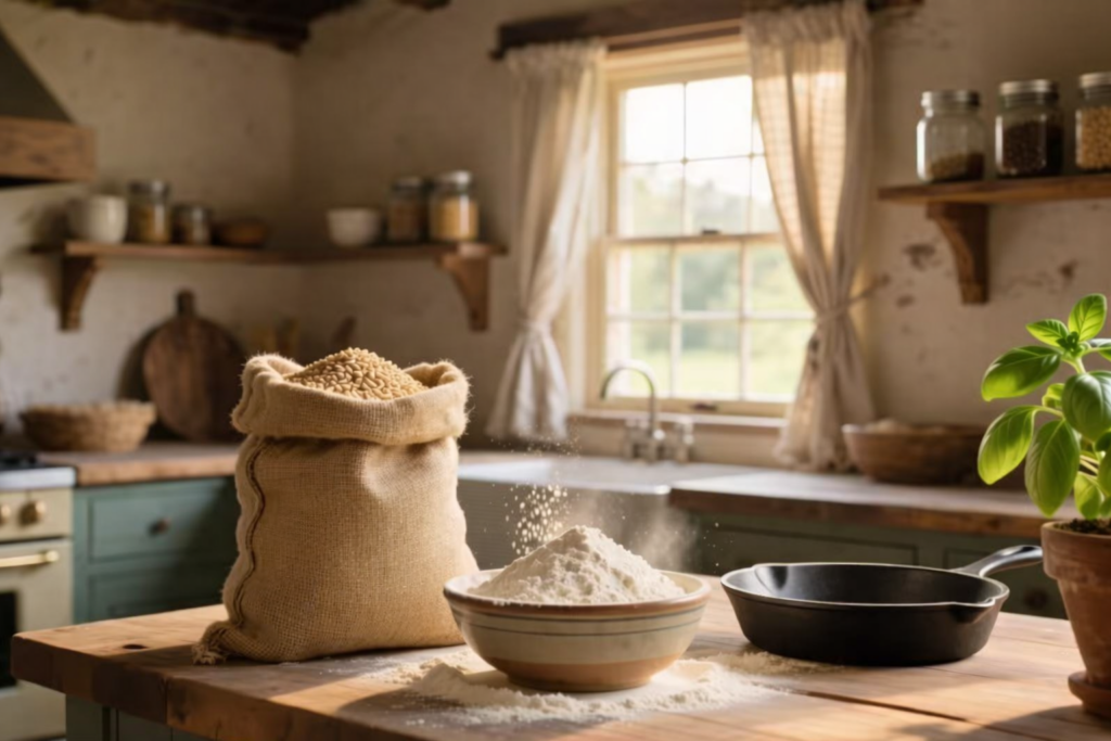 Stone-ground Sharbati wheat flour ensuring soft rotis, natural nutrition, and everyday freshness.